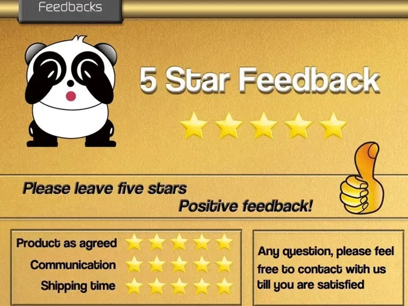 3. Your 5 stars feedback will be highly appreciated and it will encourage us to offer you more
