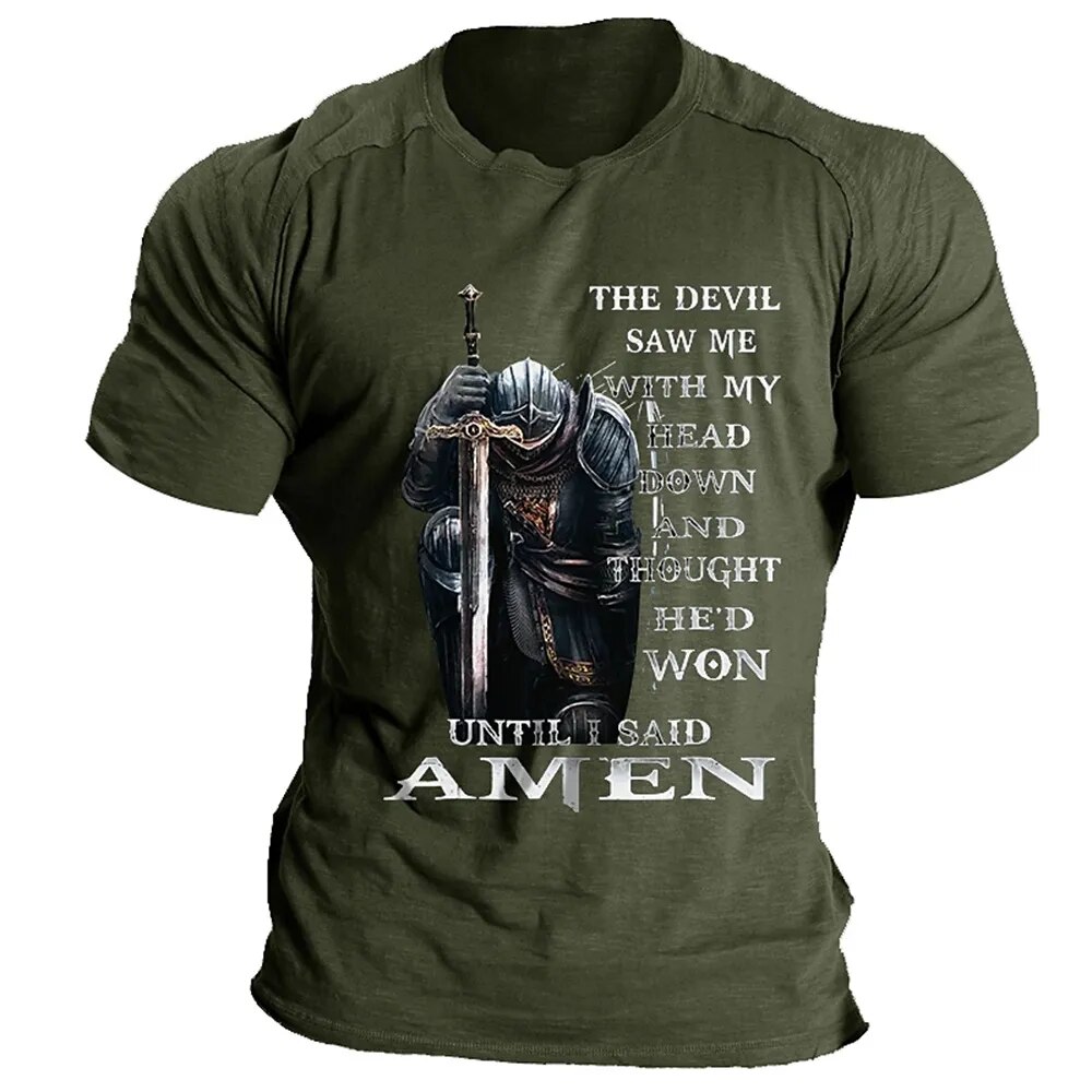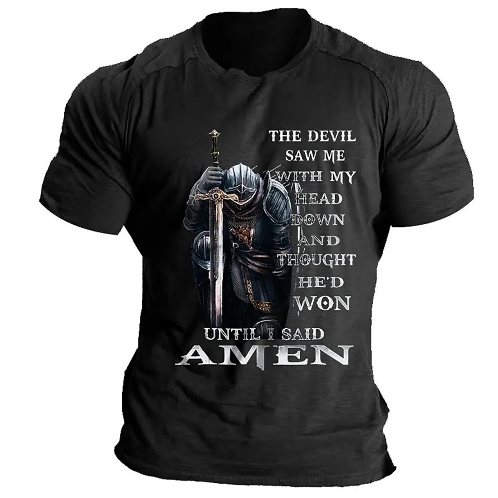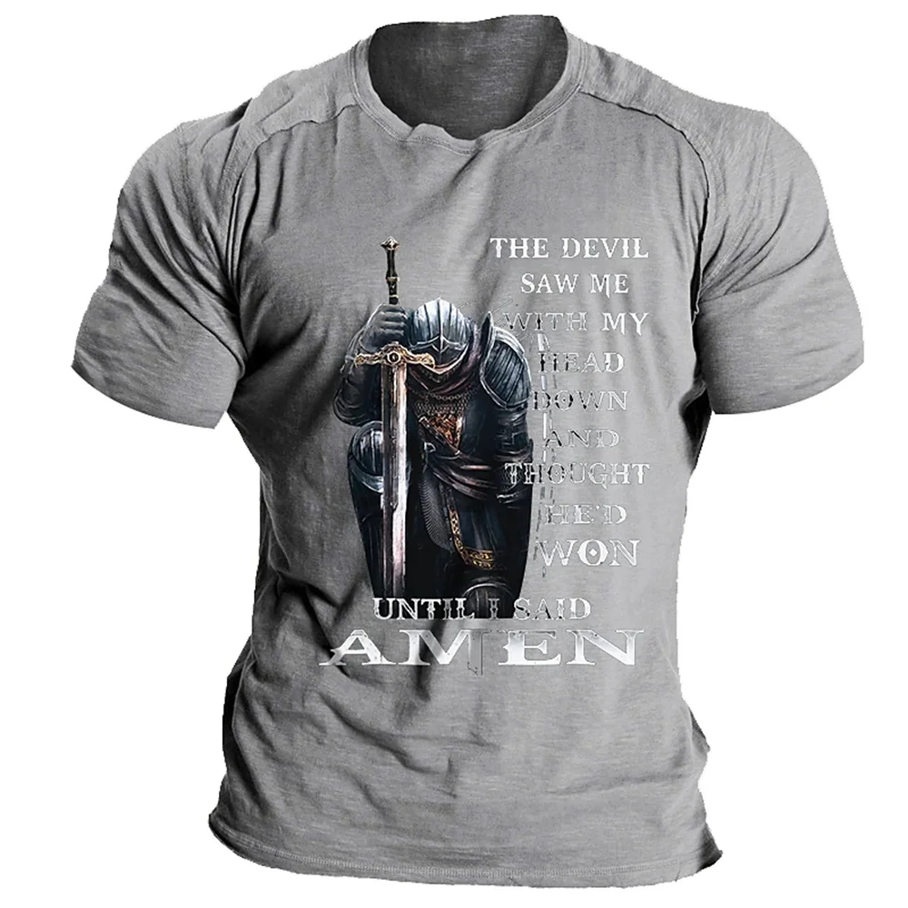 T Shirt For Men Crusader Knights Printing Short Sleeve Tops Europe and America Harajuku Vintage Clothes Casual O-neck Loose Tees